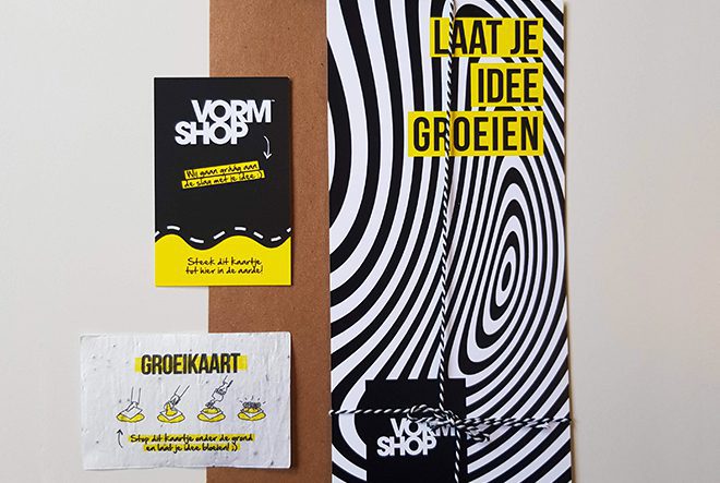 Want bij VORMSHOP doen we niks liever dan ideeën laten groeien én bloeien. Vaak planten we eerst zelf het zaadje, maar nu mag jij de stoute regenlaarzen aantrekken! 😉 Daarom krijgen al onze relaties een knap groeipakketje op de mat*. De inhoud? Een groeikaart, een ideekaart en een how-to kaartje. Alles om jouw idee optimaal te laten groeien.