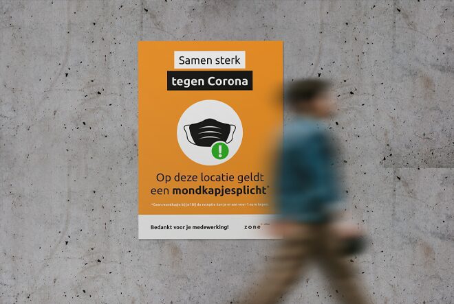 Een coronaproof-omgeving creëren voor studenten? Dat is ontzettend belangrijk! Vanaf 1 december geldt er op scholen een mondkapjesplicht. Voor Zone.college ontwierpen wij hier een icoon voor. We plaatsen dit vervolgens op posters waarop ook de andere verplichtingen rondom het coronavirus te zien zijn.