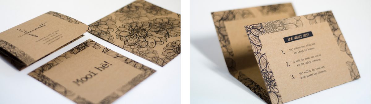 Voor Fleurissant maakten wij kaartjes voor een actiegerichte campagne. Eén kaartje zat vast aan een vaas die Fleurissant cadeau deed aan wensklanten. Op het andere kaartje stond een fleurig aanbod. Want bloemen maken een werkplek altijd fleuriger, toch?