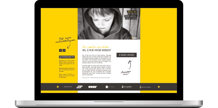 ‘Vriend van Tim’: een initiatief van autismehuis om sponsoren te vinden voor het stimuleren van de ontwikkeling van kinderen met autisme. Wij bedachten de campagne ‘Ik ben Tim’ om dit initiatief onder de aandacht te brengen.