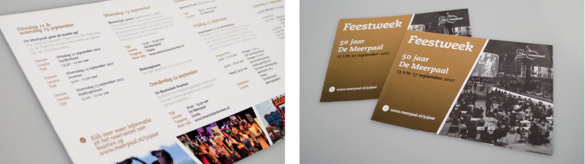 In 2017 bestaat de Meerpaal 50 jaar! Reden voor een flinke party dus. Én een birthdaysuit voor de communicatiemiddelen natuurlijk. Goud geeft dit jubilieum een extra feestelijk tintje. Hieperdepiep!