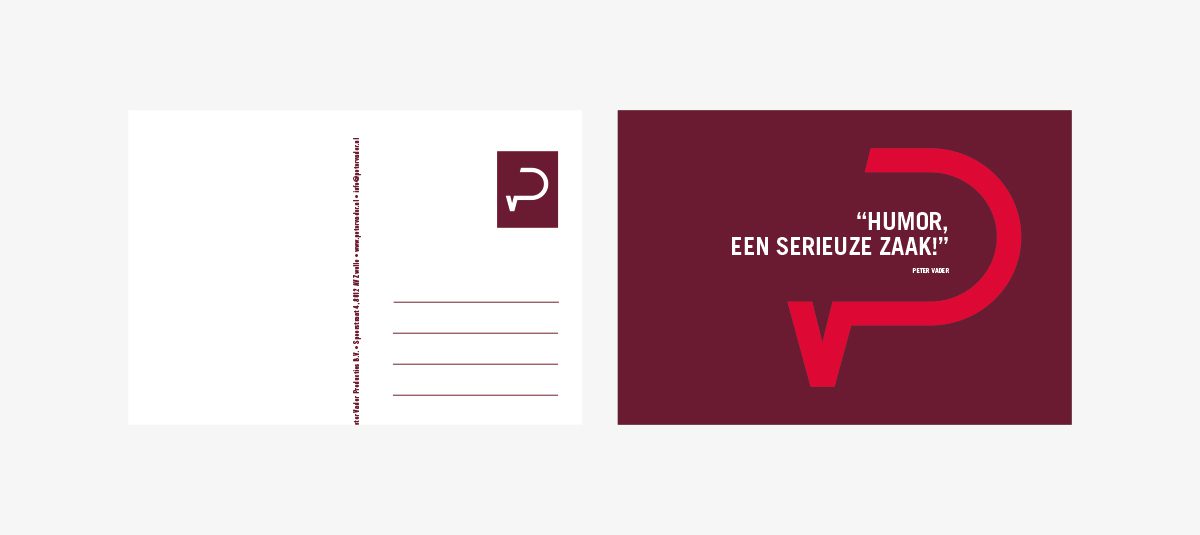 Expert in communiceren, contact maken en bewustwording: Peter Vader is het. Wij ontwierpen zijn logo en huisstijl. De letter P vorm de basis voor de tekstballon, waarmee in één oogopslag duidelijk wordt waar deze man voor staat.