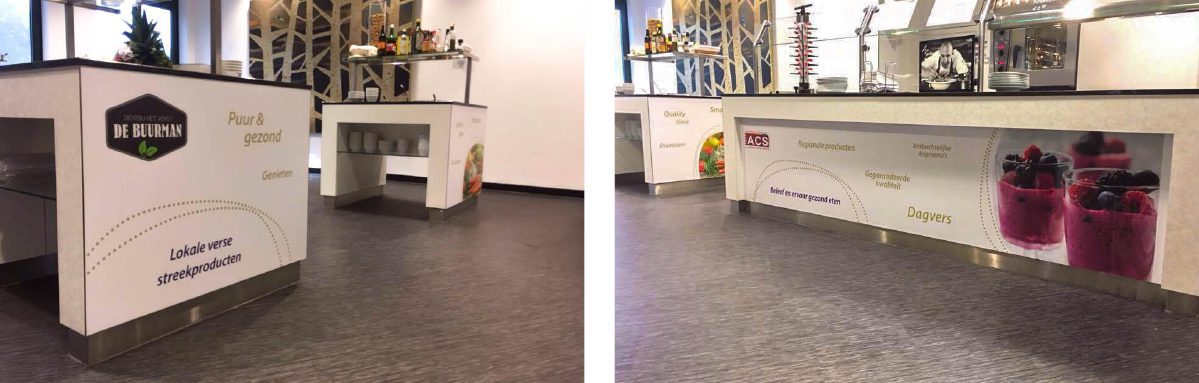 Voor Rabobank IJsseldelta zijn we aan de slag gegaan met signing. Eén van de kantoormuren in het pand is voorzien van een magnetische whiteboardwand waar medewerkers op kunnen schrijven. Dat maakt brainstormen, plannen en structuur houden een stuk leuker en makkelijker! En daar hebben we het niet bij gelaten. Het bedrijfsrestaurant is leuk aangekleed met stickers over het eten en drinken van de leveranciers.