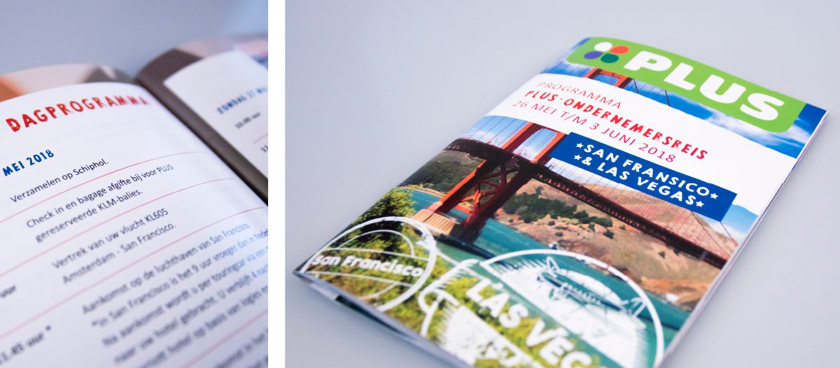 Bij Subweb regel je vliegvakanties, autovakanties en wintersportreizen naar bestemmingen binnen en buiten Europa. Je fixt het allemaal online! Maar soms gaat Sunweb op de ‘offline tour’. Wij mochten een programmaboekje maken voor een klant van Subweb: PLUS. De supermarktketen gaat namelijk met alle ondernemers naar San Fransisco en Las Vegas!