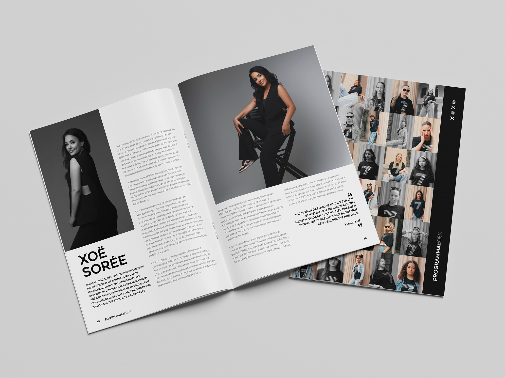 Het 24 pagina’s tellende programmaboek was één van de eerste middelen, die we samen met Xoë en haar danstalent mochten ontwikkelen.